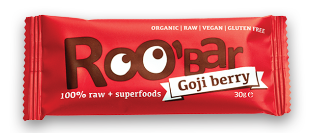 100% Organic Raw Bar with Superfoods Fresh goji berries with soft coconut Native to the Himalayas, goji berry is known as “the fountain of youth”. Boosted with vitamin A and beta-carotene, it helps rejuvenate your eyes and skin. Goji berry along with the sweet coconut, cacao powder and almonds will revitalize your body and soul.