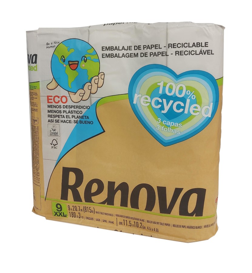 Wrapped in paper kitchen towels: simplicity and commitment to the environment. Renova Extra XXL paper towels, avoid plastic and save natural resources.. Strong and absorbent paper towels, the solution for the small confusions at home, in the kitchen, garden or studio.