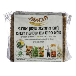 לחם מחמצת שיפון אורגני מלא פרוס עם שלושה דגנים