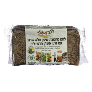לחם מחמצת שיפון מלא אורגני עם זרעי פשתן וזרעי צ'יה