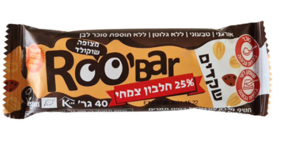 Roobar Protein - Chocolate Covered Almond Bar 40g חטיף חלבון אורגני על בסיס תמרים ושקדים מצופה שוקולד 40 גרם